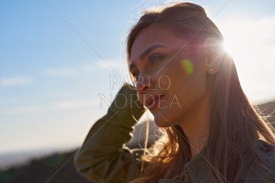 Chilled Young Lady Posing Looking At The CameraChilled young lady posing looking at the camera stock photo.